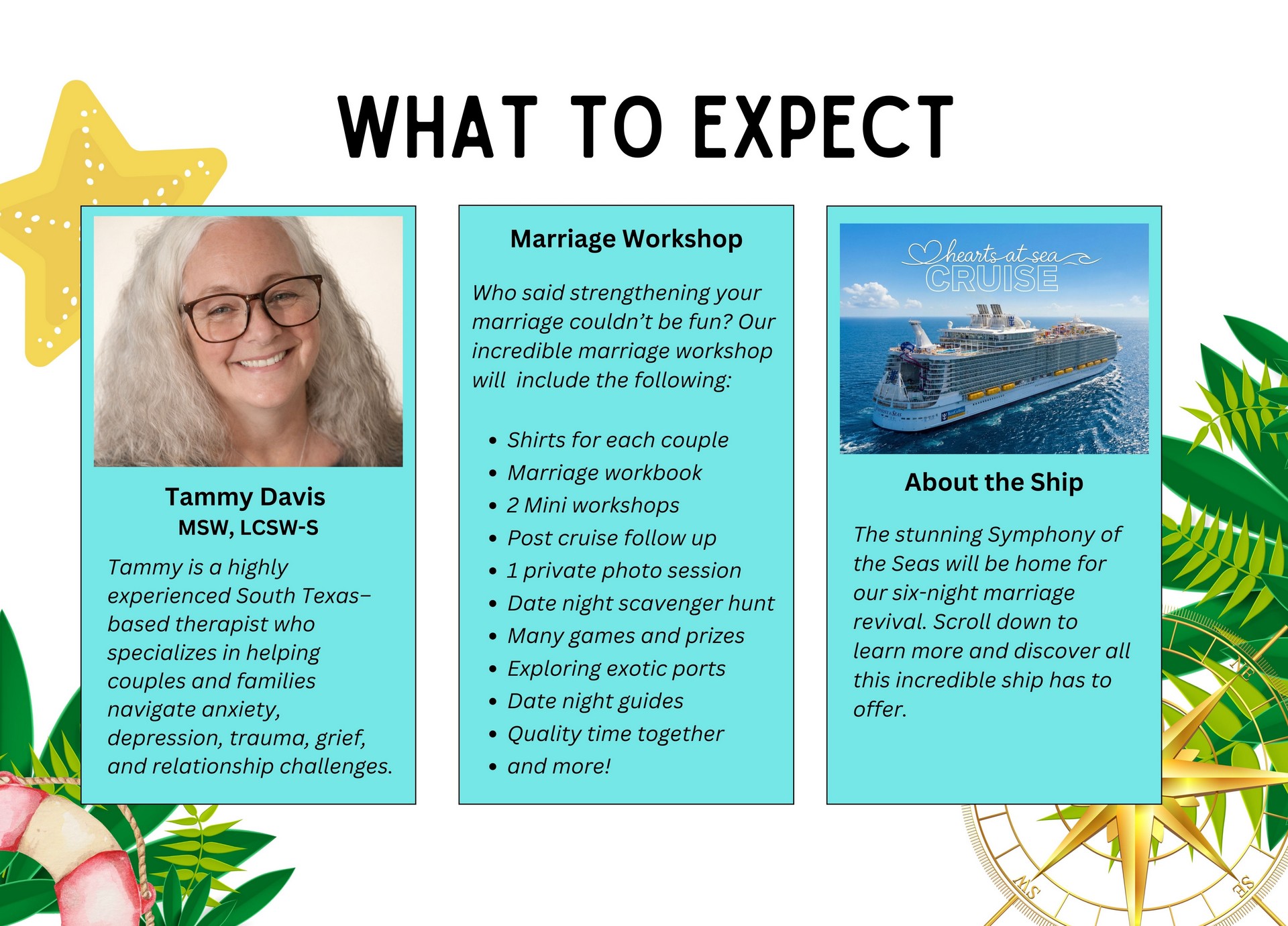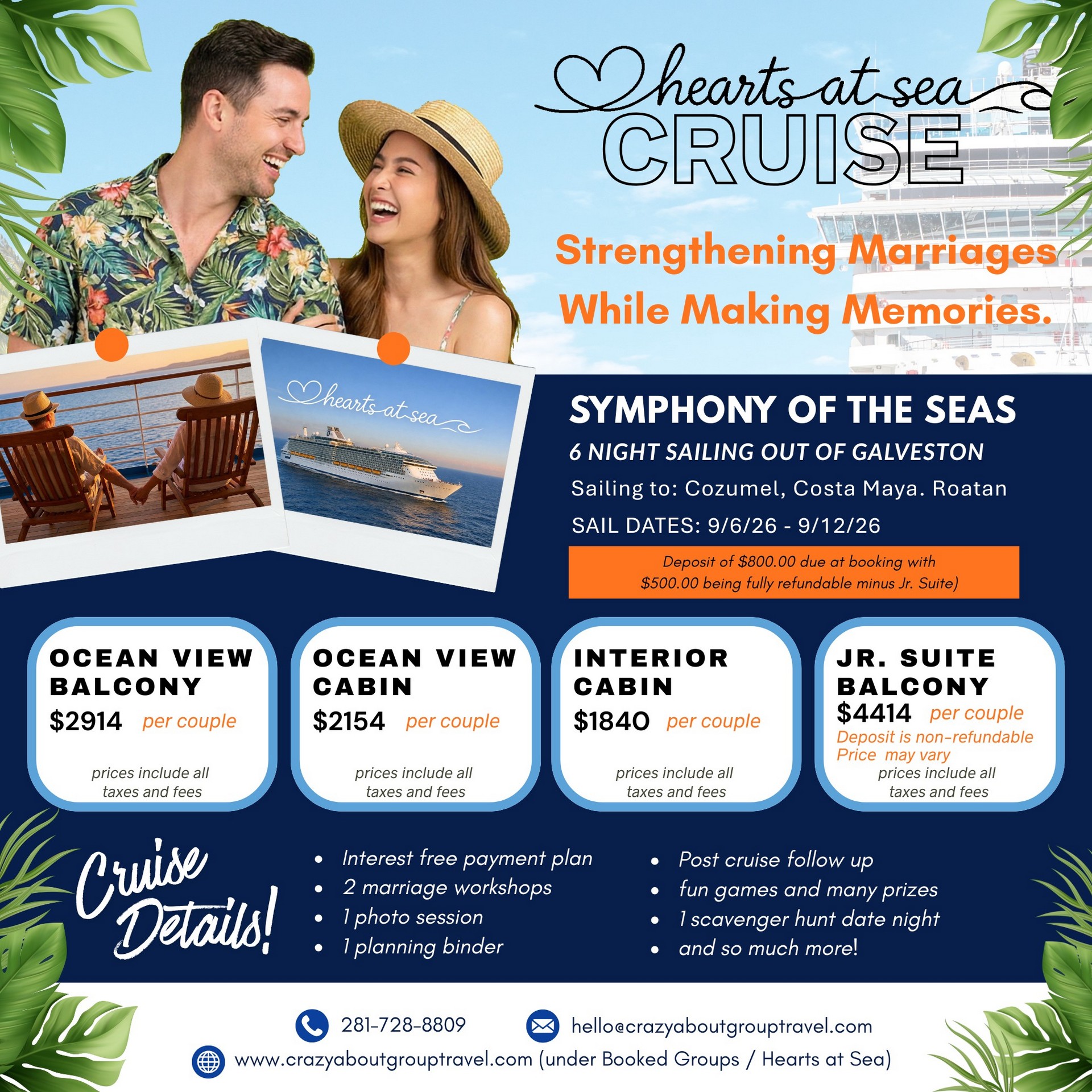 Hearts at Sea is more than just a cruise—it’s an unforgettable marriage-strengthening experience designed to help couples reconnect, recharge, and grow together. Set against the beauty of the open ocean, this intentionally curated journey blends meaningful relationship enrichment with relaxation, fun, and romanc​e. Couples enjoy powerful moments of connection, guided discussions, and time to truly focus on one another—away from daily distractions—while still savoring all the excitement and luxury of cruising. It’s the perfect balance of love, learning, and lasting memories.